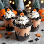 Create spooky Graveyard Dirt Cups with creamy chocolate pudding and crushed Oreos. Perfect for Halloween! Try this fun recipe today!
