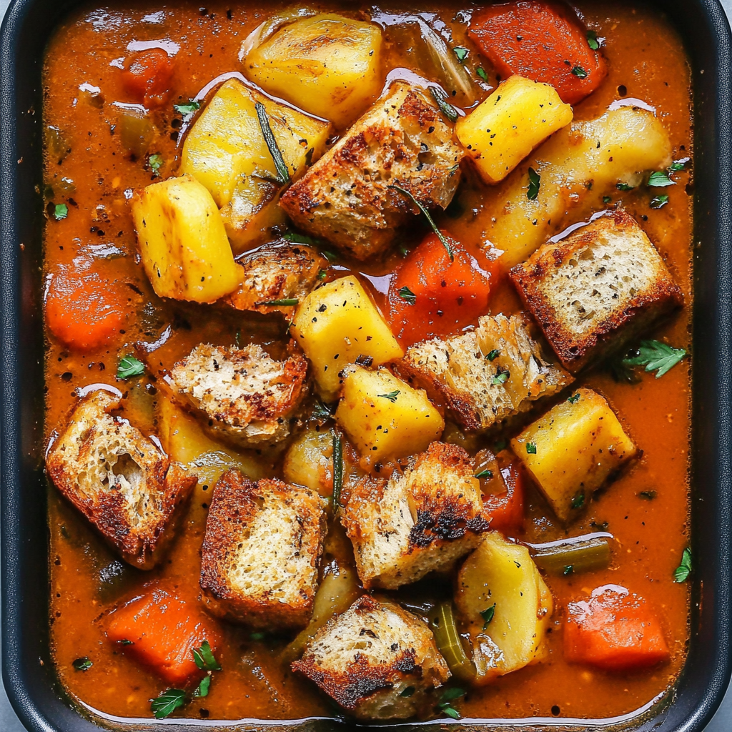Enjoy your delightful Sheet Pan Soup with these crispy croutons for an added crunch!