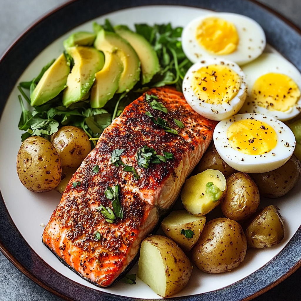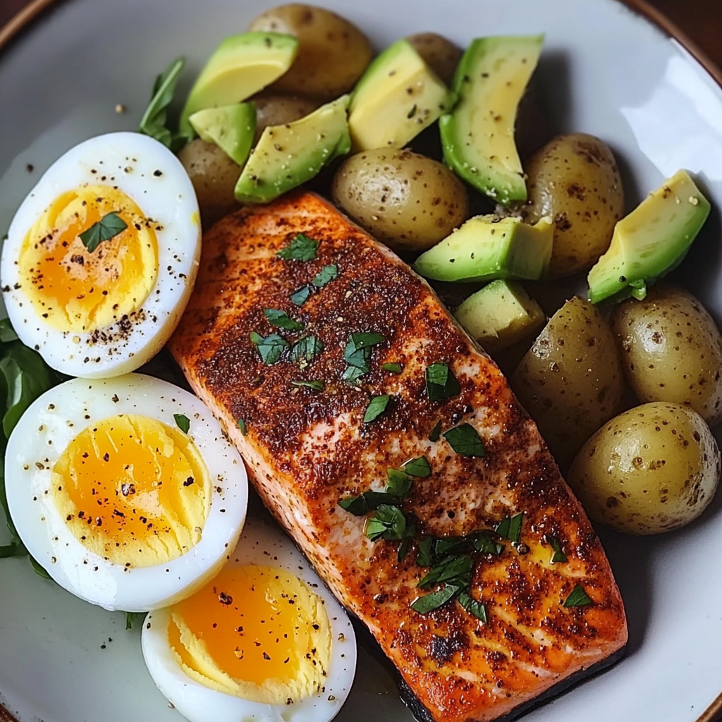 Spiced Salmon with Garlic Herb Potatoes, Avocado & Soft-Boiled Eggs is a delightful dish that combines flavors and textures in a nutritious package. This recipe is perfect for lunch or dinner, making it suitable for any occasion. The standout qualities of this meal include its vibrant colors, rich flavors, and health benefits, ensuring you enjoy every bite.